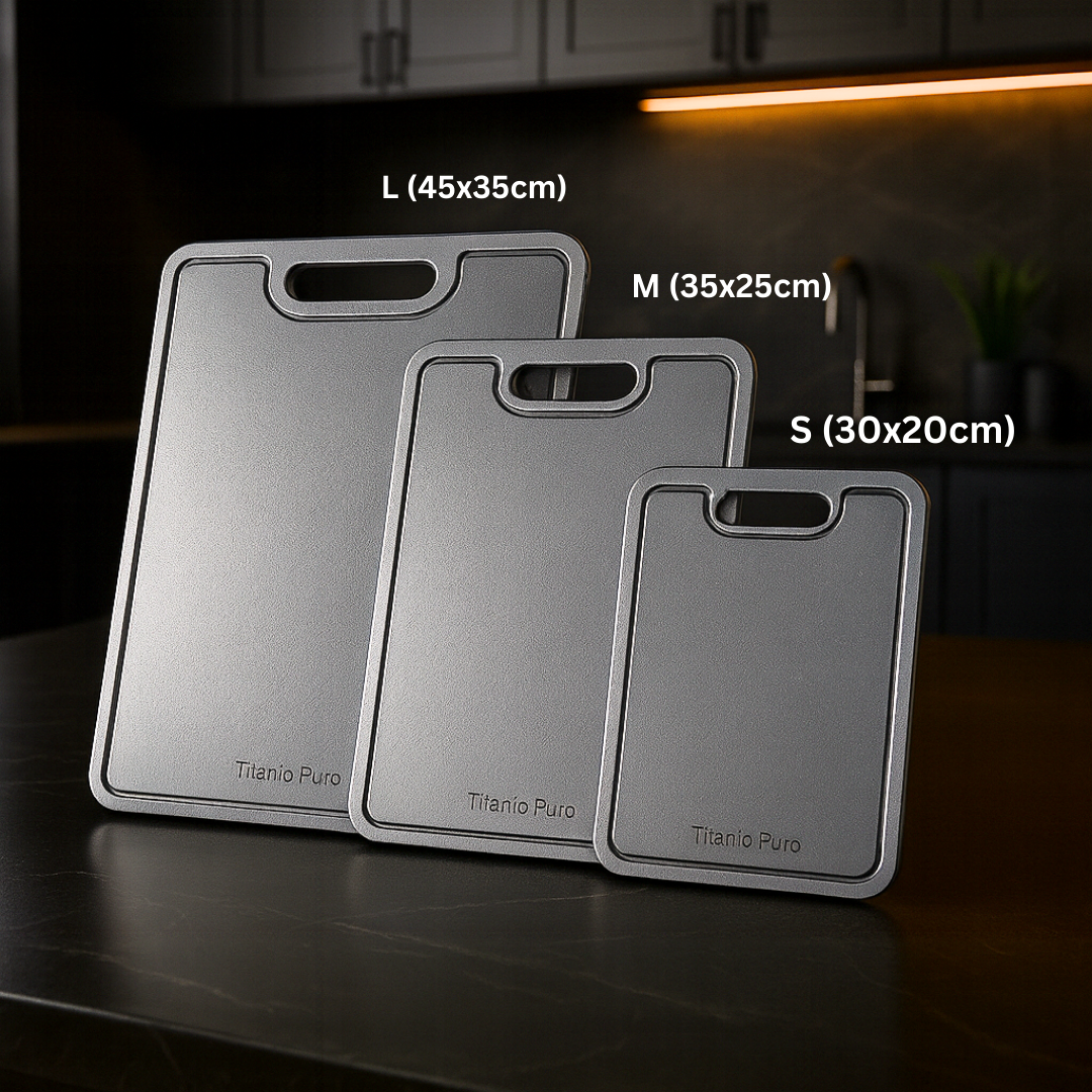 Titanové krájecí desky jsou antibakteriální a nereagují s potravinami, což zajišťuje hygienický a bezpečný povrch pro přípravu jídel. Na rozdíl od tvrdších materiálů, jako je sklo nebo keramika, jsou šetrné k nožům, chrání jejich ostří, jsou odolné proti poškrábání a extrémně trvanlivé. Navíc jsou lehké a elegantní, kombinují praktičnost s moderním designem a jsou tak vynikající volbou do každé kuchyně.